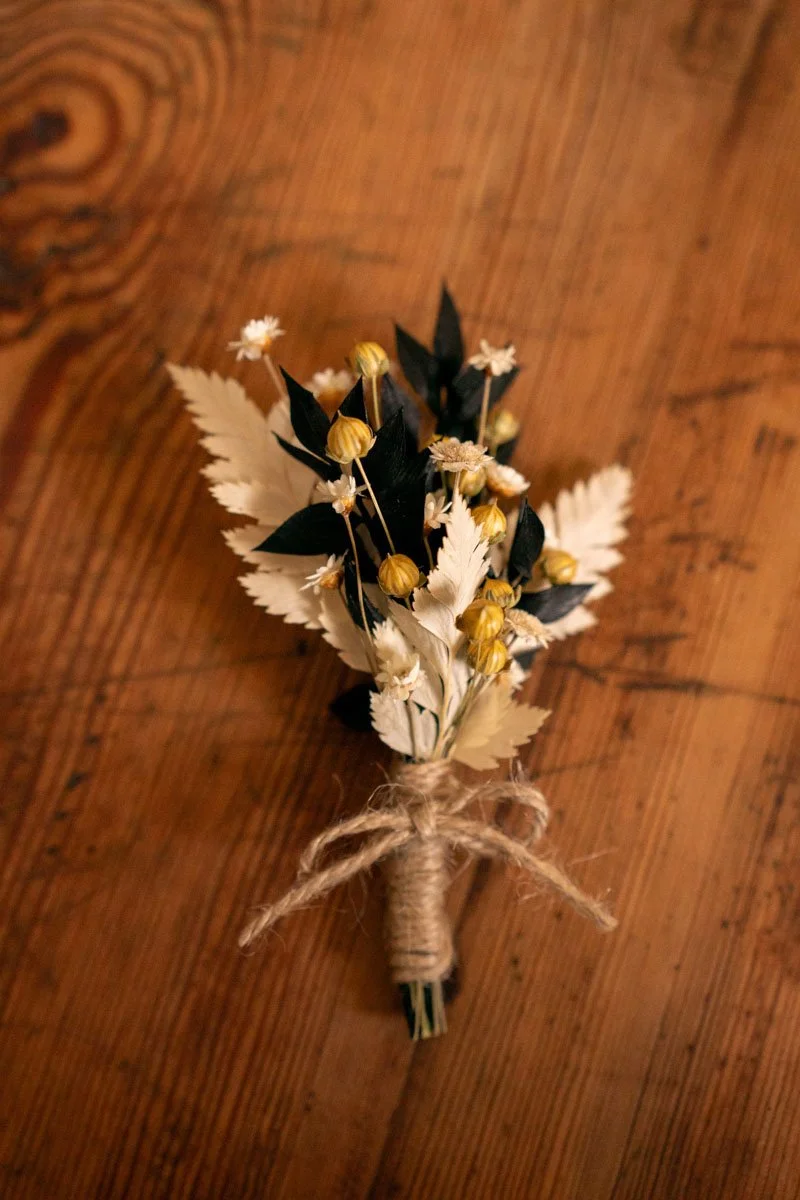 Un incontournable des mariages, la boutonnière en fleurs séchées est un détail raffiné qui complète parfaitement les costume des marié(e)s. Elle peut également être assortie à celles des témoins, créant une belle harmonie au sein des proches. Grâce à leur durabilité, mes boutonnières se conservent comme un souvenir du grand jour. Elles sont réalisées sur commande pour s’adapter à vos couleurs et à votre style.